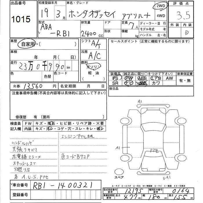HONDA ODYSSEY 2007 г., лот № 1015