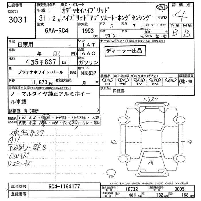 HONDA ODYSSEY 2019 г., лот № 3031