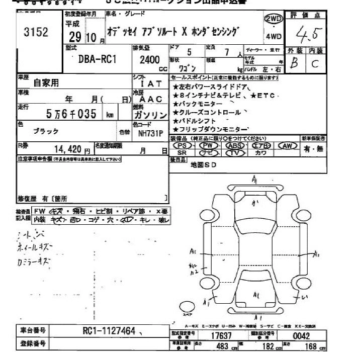 HONDA ODYSSEY 2017 г., лот № 3152