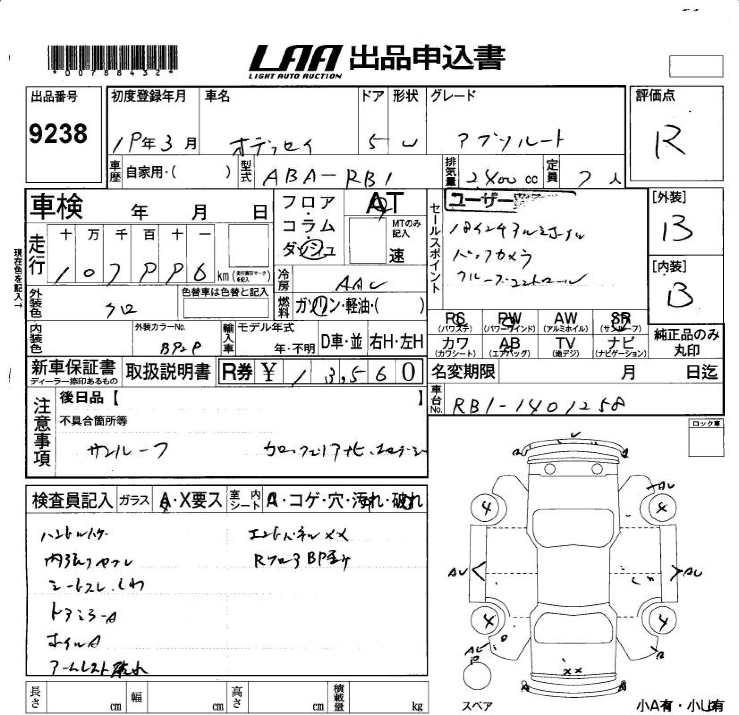 Статус продан Лот 9238 Аукцион LAA Okayama Дата аукциона 13.03.2026