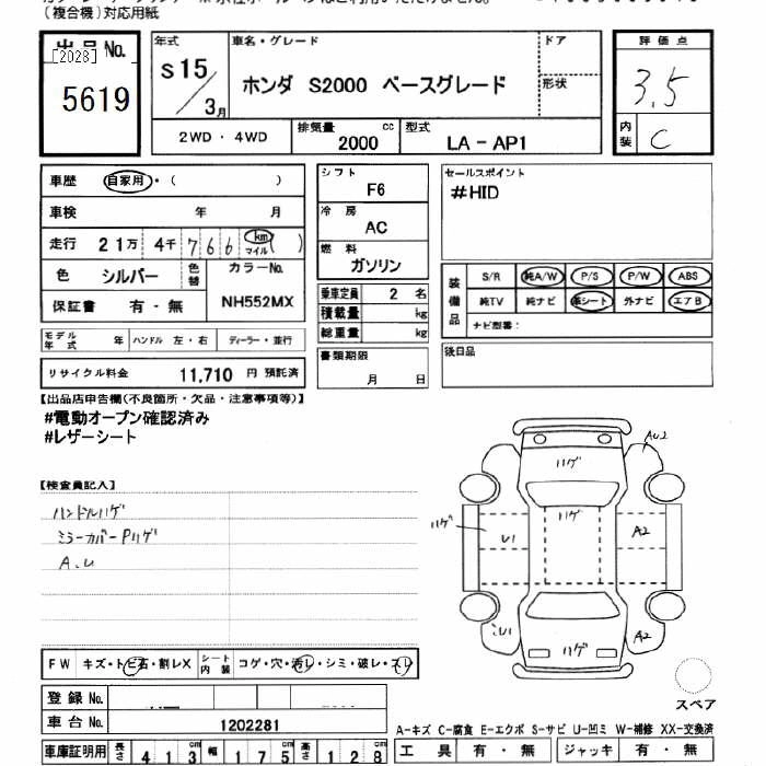 Год выпуска2003 Пробег 214 000 км КузовAP1 Комплектация BASE GRADE