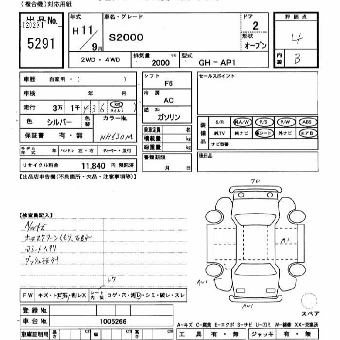 HONDA S2000 1999 г., лот № 5291