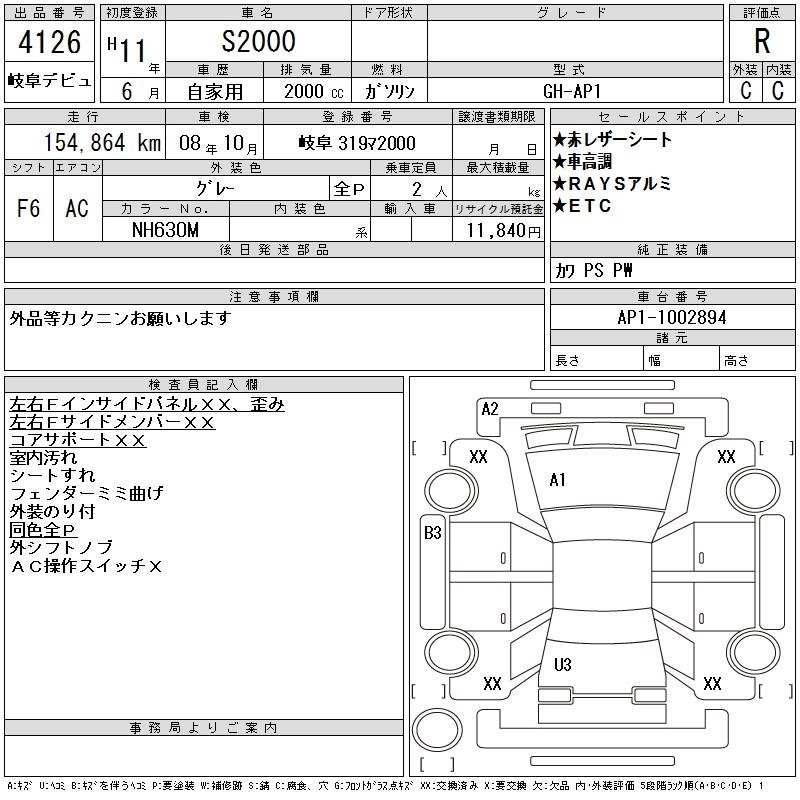 Статус выставлен на аукцион Лот 4126 Аукцион CAA Gifu Дата аукциона 10.03.2026