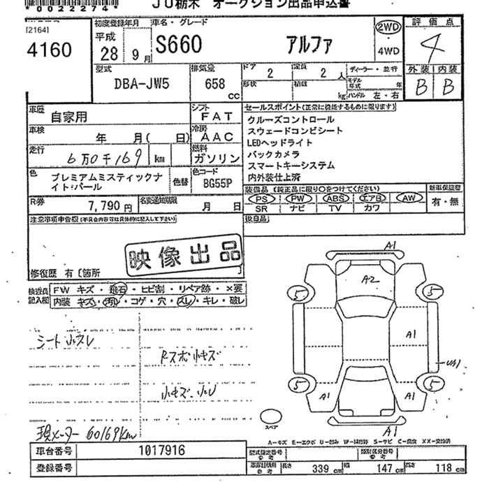 HONDA S660 2016 г., лот № 4160