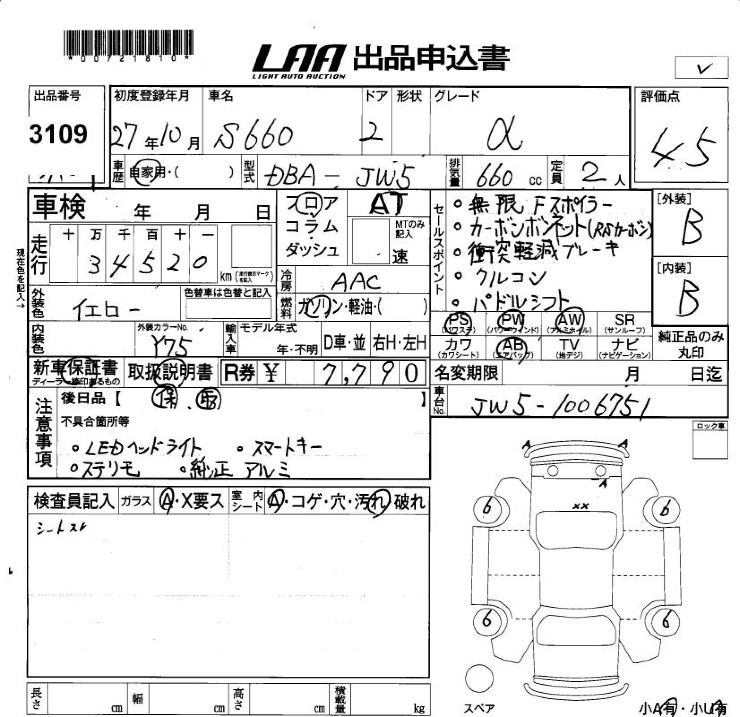 Статус продан Лот 3109 Аукцион LAA Okayama Дата аукциона 06.02.2026