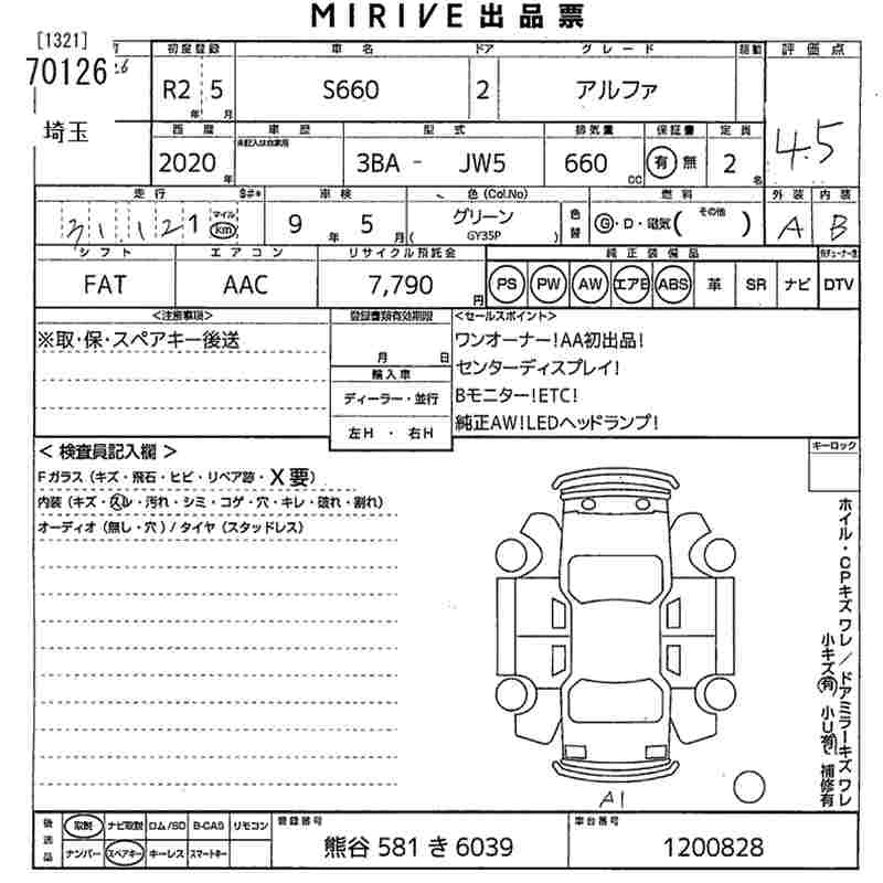 HONDA S660 2020 г., лот № 70126