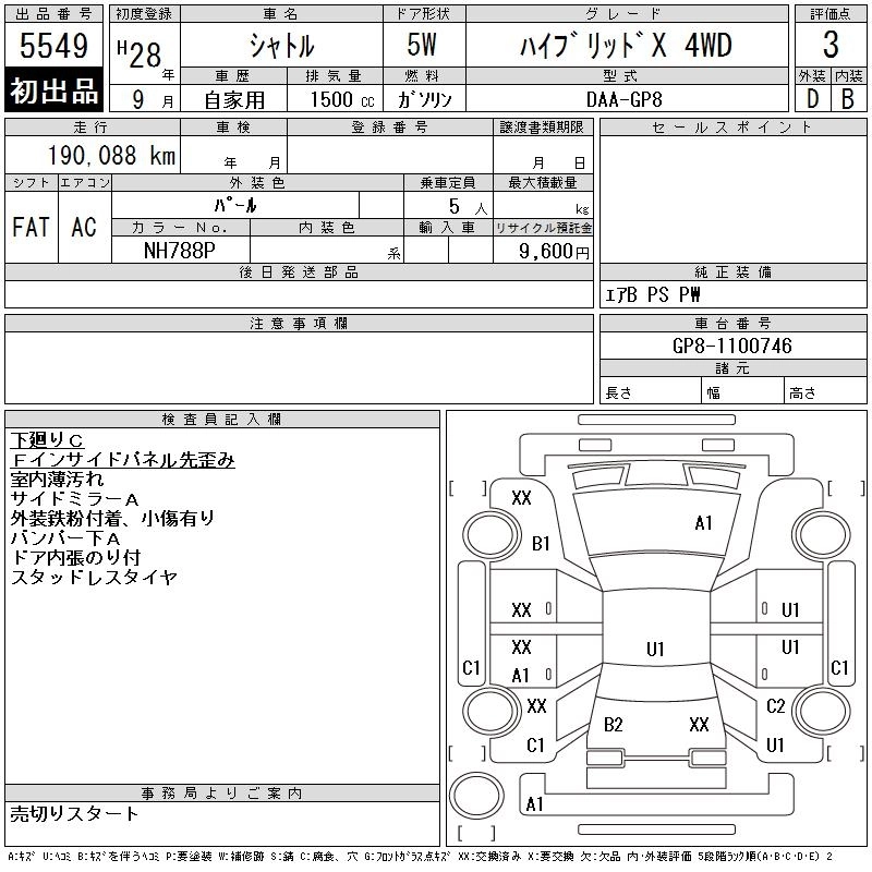 HONDA SHUTTLE 2016 г., лот № 5549