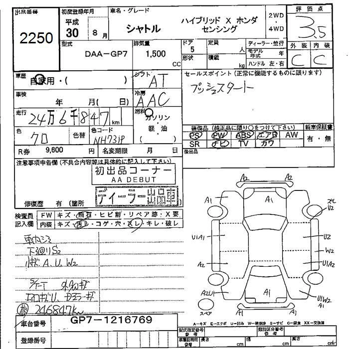 HONDA SHUTTLE 2018 г., лот № 2250