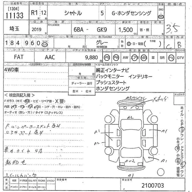 HONDA SHUTTLE 2019 г., лот № 11133