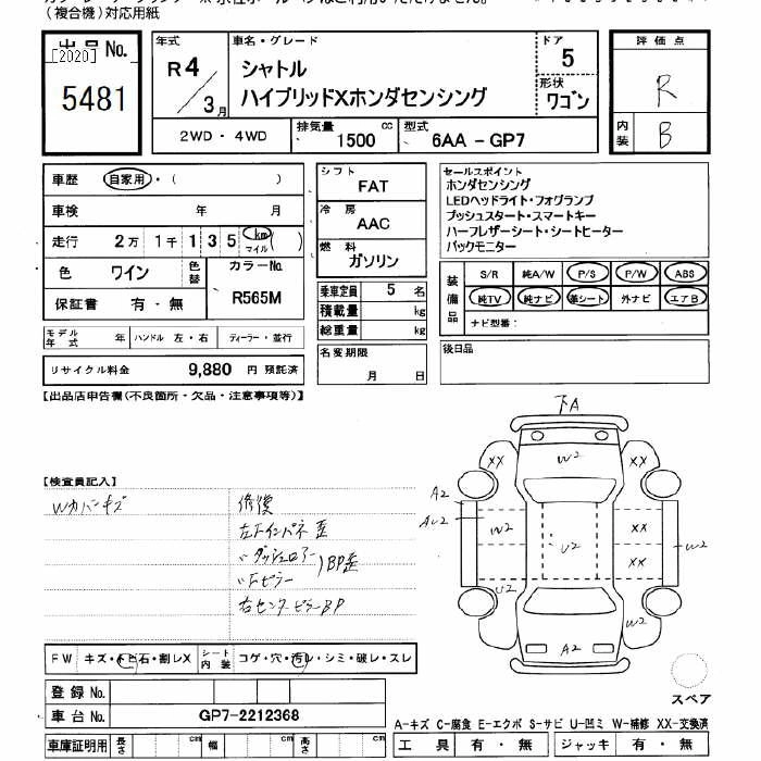 Год выпуска2022 Пробег 21 000 км КузовGP7 Комплектация HYBRID X HONDA SENSING