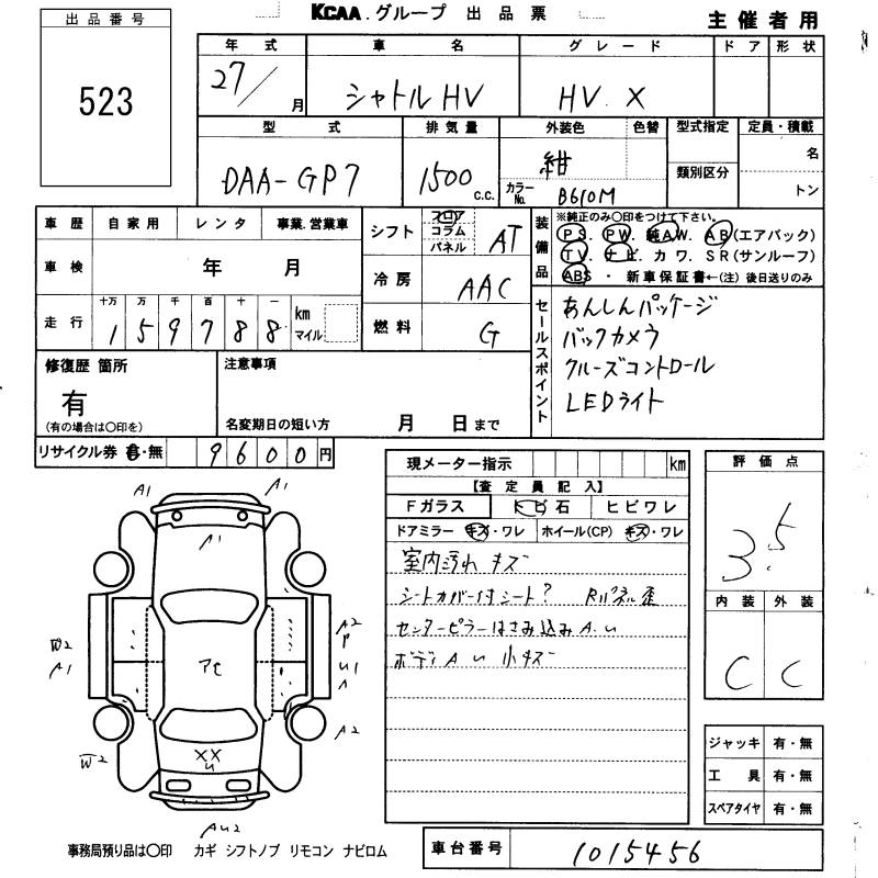 HONDA SHUTTLE 2015 г., лот № 523