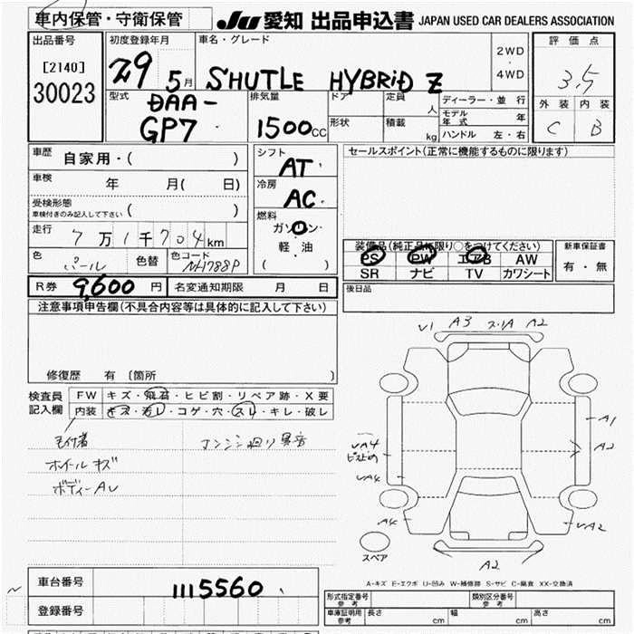 HONDA SHUTTLE 2017 г., лот № 30023