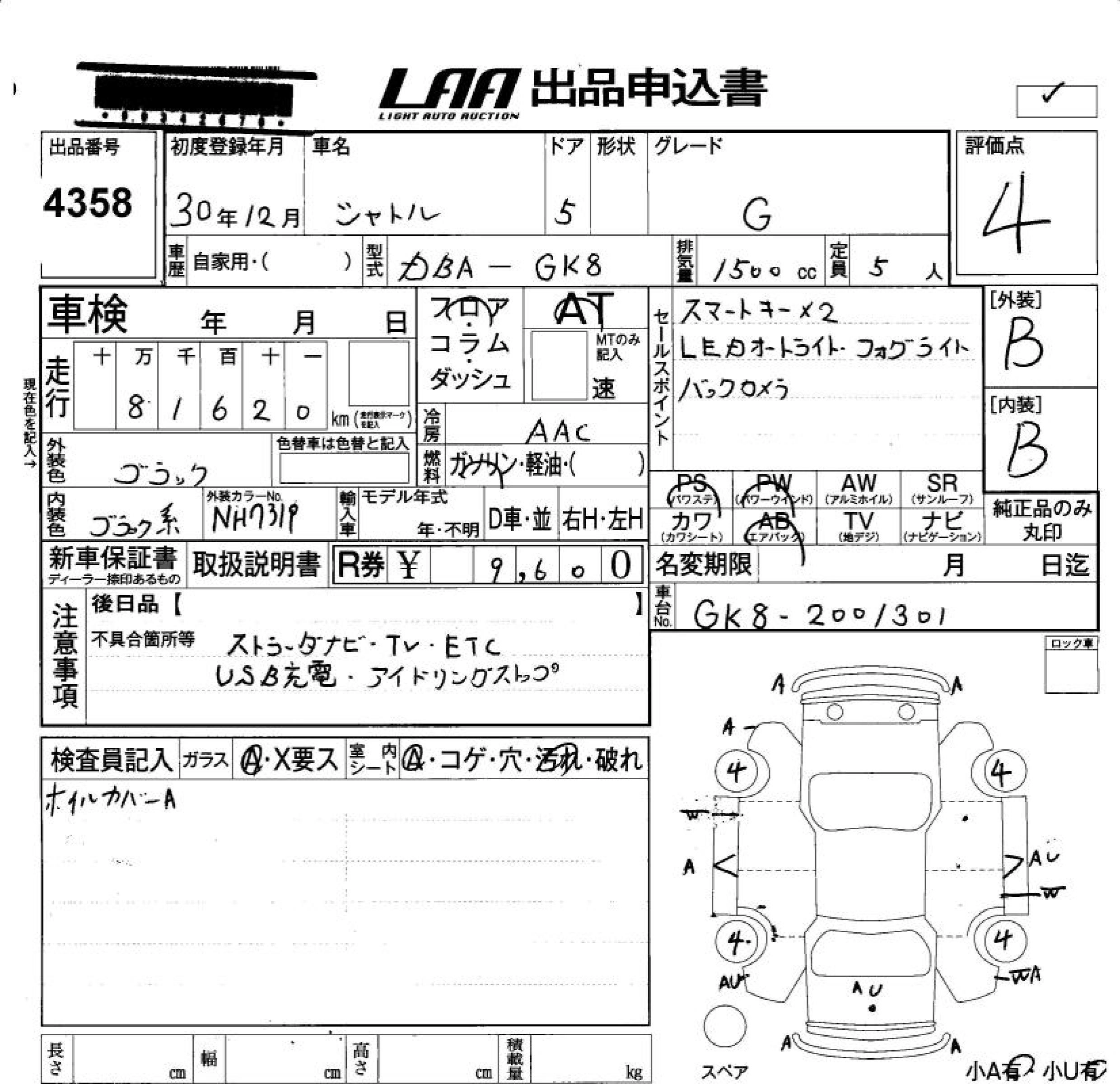 Статус продан Лот 4358 Аукцион LAA Okayama Дата аукциона 23.01.2026