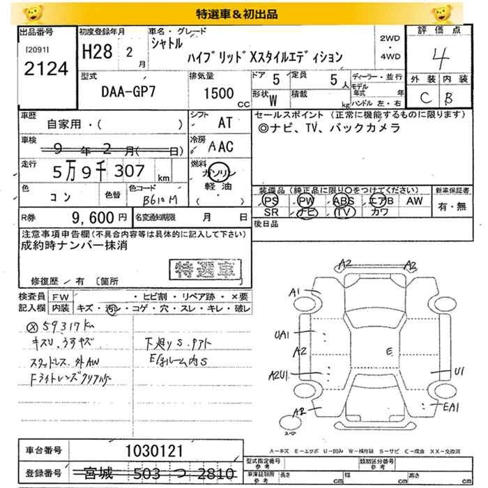 HONDA SHUTTLE 2016 г., лот № 2124