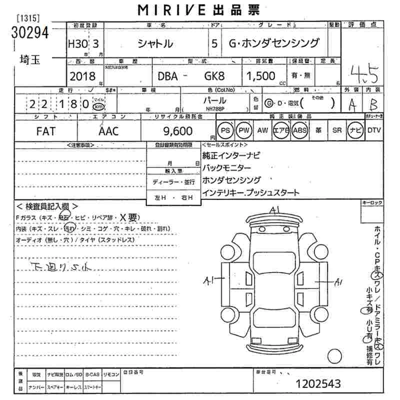 HONDA SHUTTLE 2018 г., лот № 30294