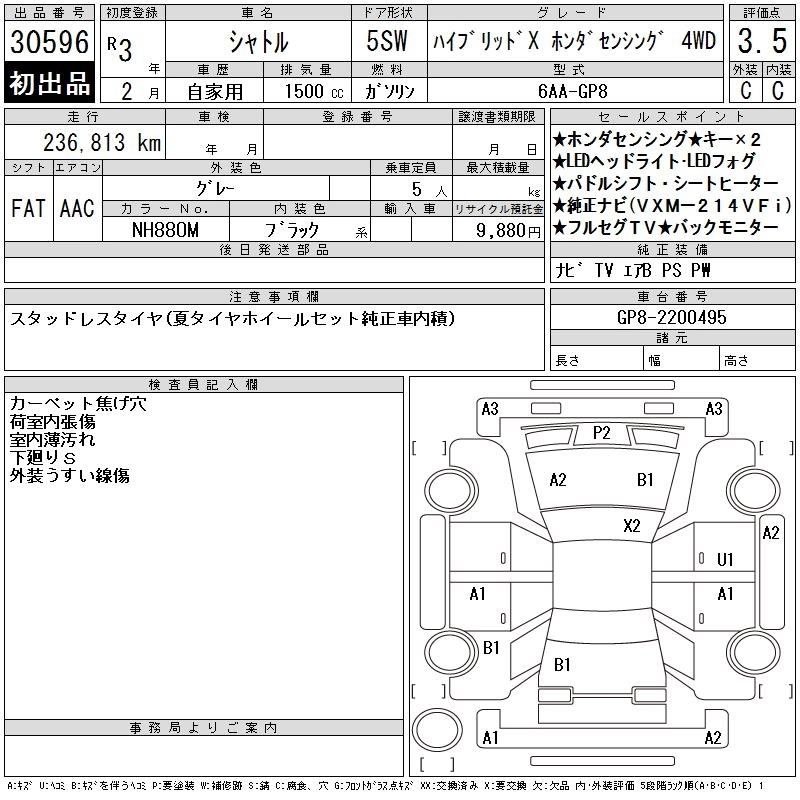 Год выпуска2021 Пробег 237 000 км КузовGP8 Комплектация HYBRID X HONDA SEN4WD
