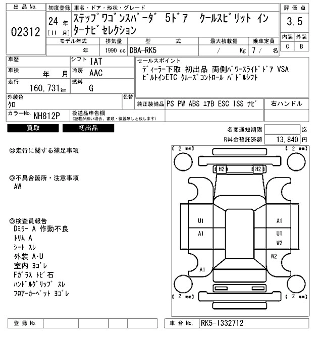 HONDA STEPWGN SPADA 2012 г., лот № 2312