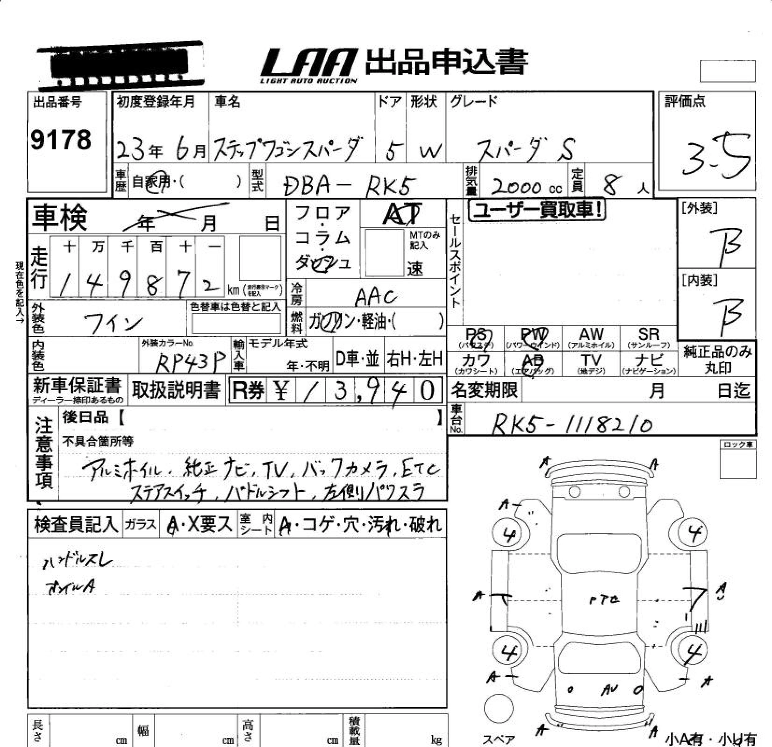 Статус продан Лот 9178 Аукцион LAA Okayama Дата аукциона 21.11.2025