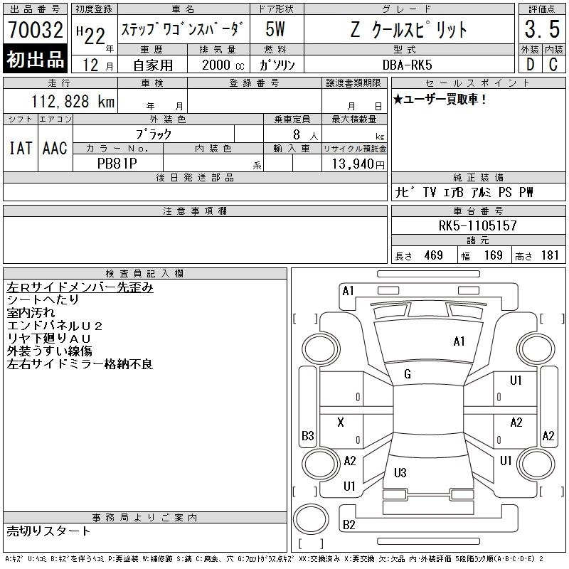 Статус выставлен на аукцион Лот 70032 Аукцион CAA Gifu Дата аукциона 09.12.2025