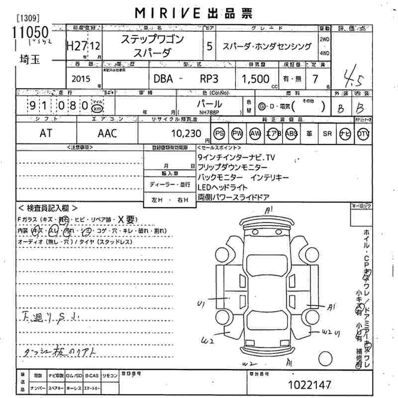 Год выпуска2015 Пробег 91 000 км КузовRP3 Комплектация SPADA * HONDA SENSING