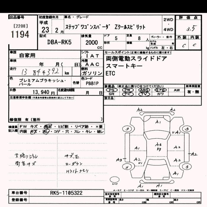 Год выпуска2011 Пробег 134 000 км КузовRK5 КомплектацияZ COOL SPIRIT 8 PERSON