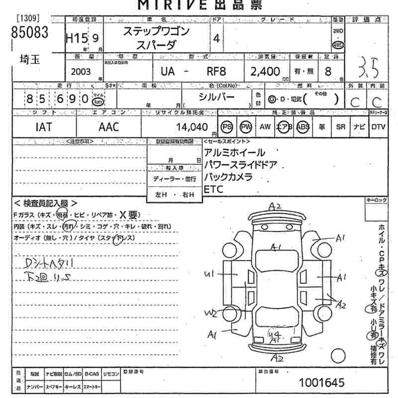 Статус выставлен на аукцион Лот 85083 Аукцион MIRIVE Saitama Дата аукциона 10.12.2025