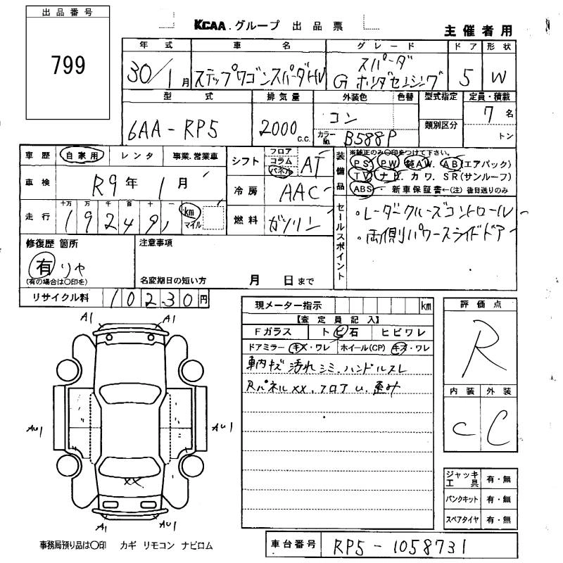 HONDA STEPWGN SPADA 2018 г., лот № 799