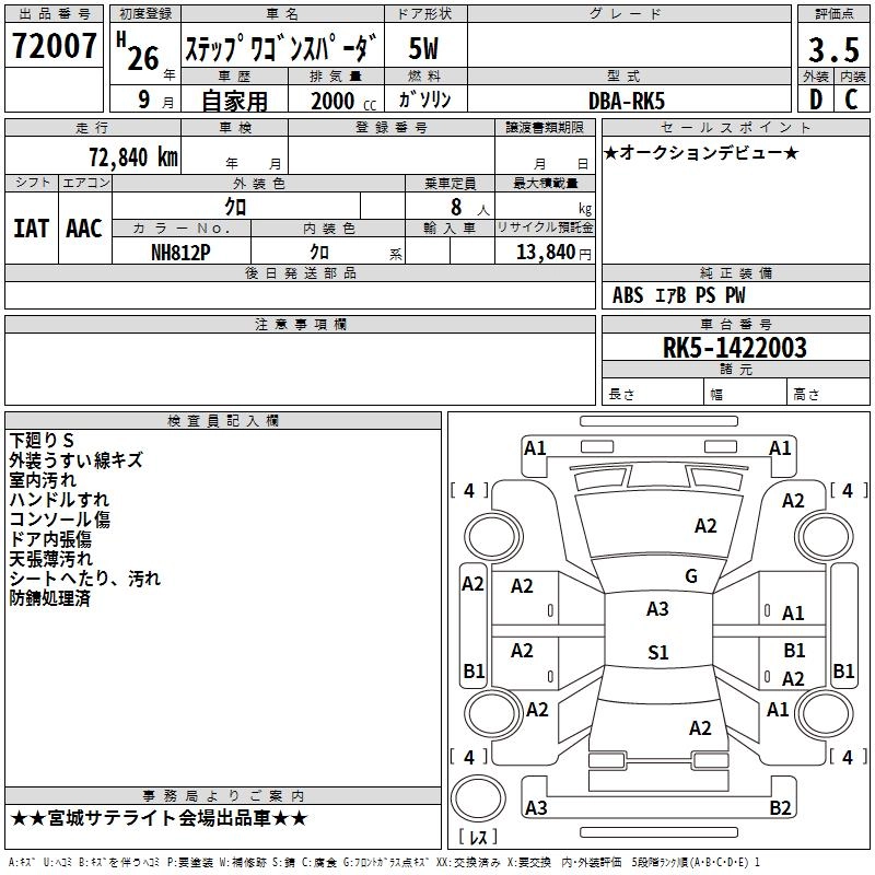 HONDA STEPWGN SPADA 2014 г., лот № 72007