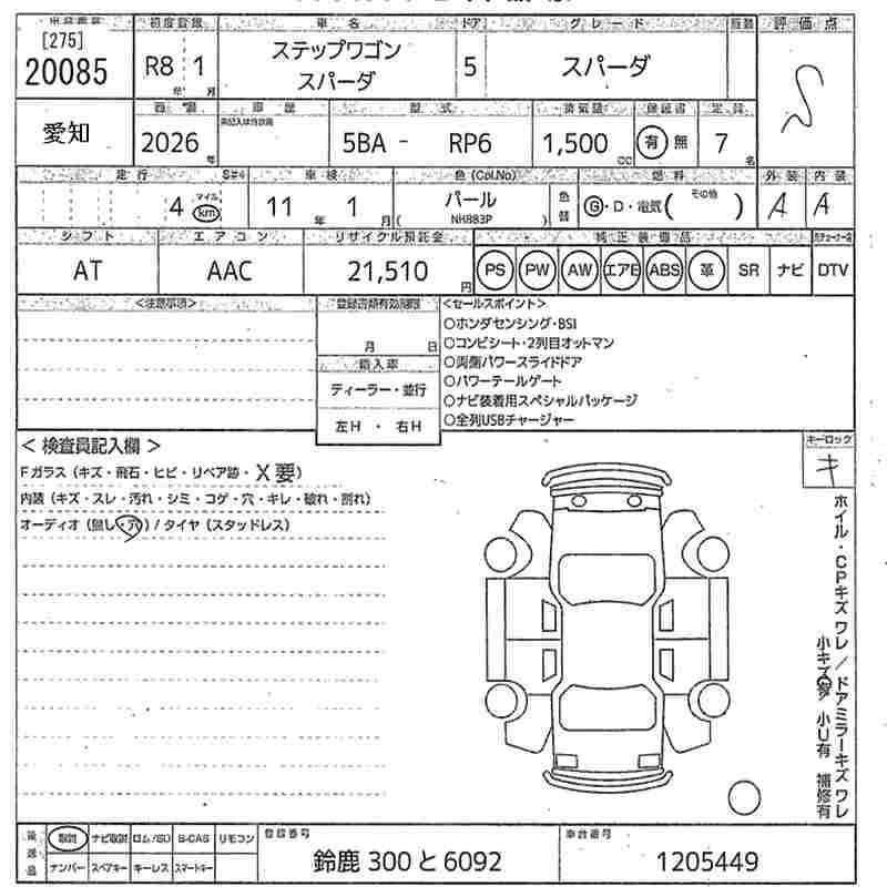Статус продан Лот 20085 Аукцион MIRIVE Aichi Дата аукциона 23.01.2026