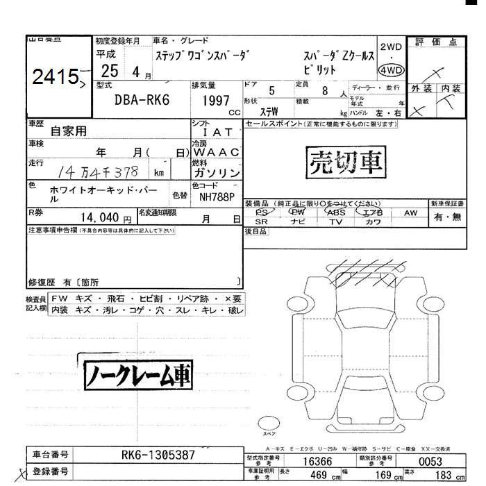 Год выпуска2013 Пробег 144 000 км КузовRK6 Комплектация4WD Z COOL SPIRIT