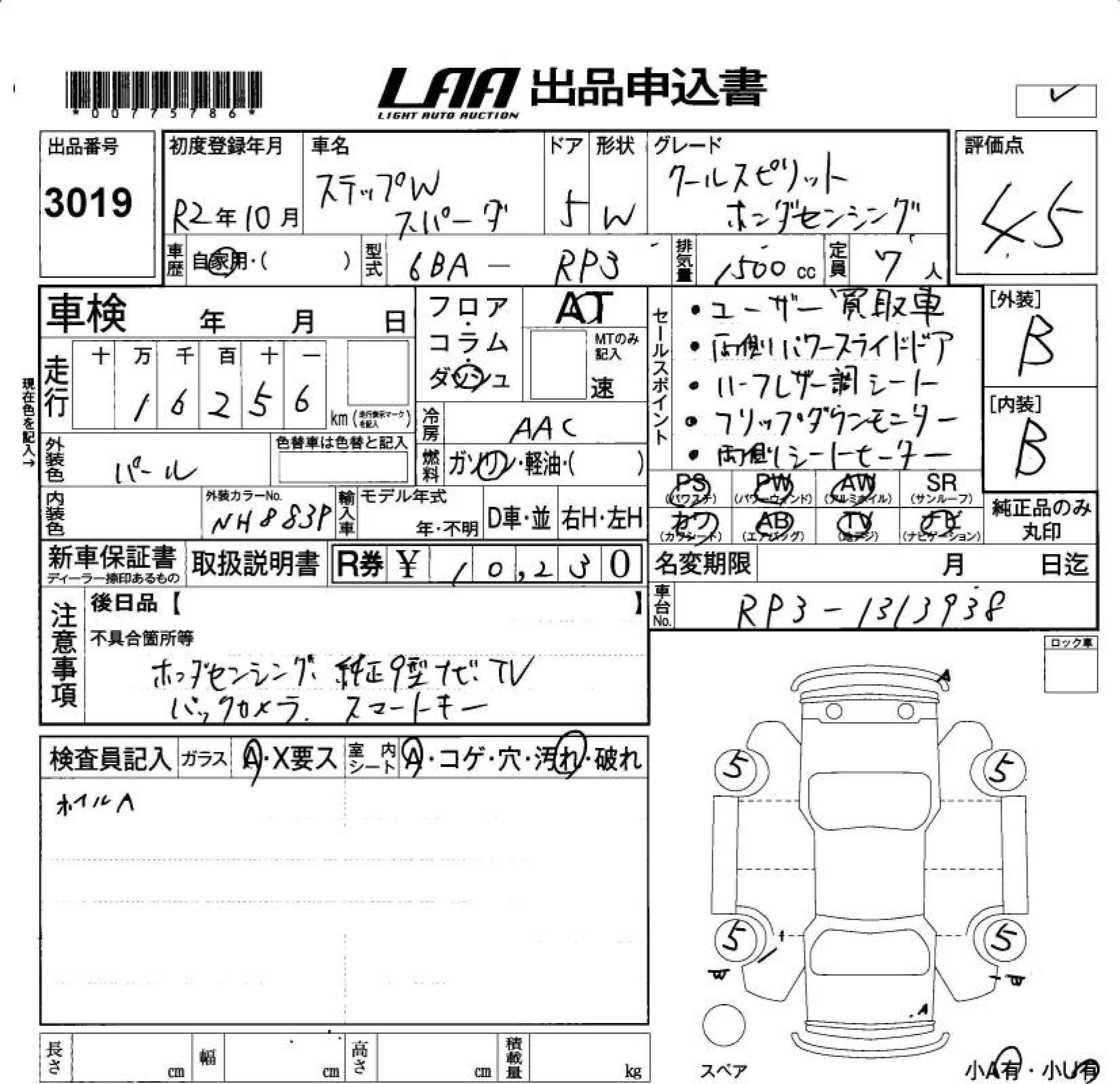 Статус не продан Лот 3019 Аукцион LAA Okayama Дата аукциона 23.01.2026