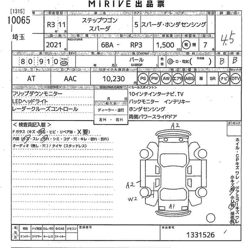 Год выпуска2021 Пробег 81 000 км КузовRP3 Комплектация SPADA * HONDA SENSING