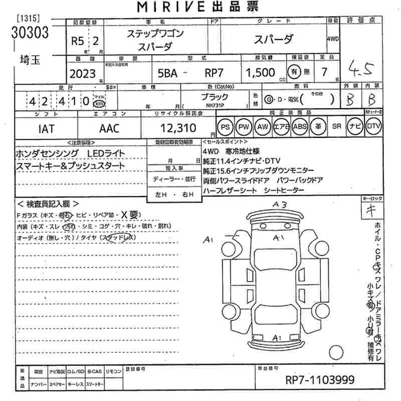 Статус выставлен на аукцион Лот 30303 Аукцион MIRIVE Saitama Дата аукциона 28.01.2026