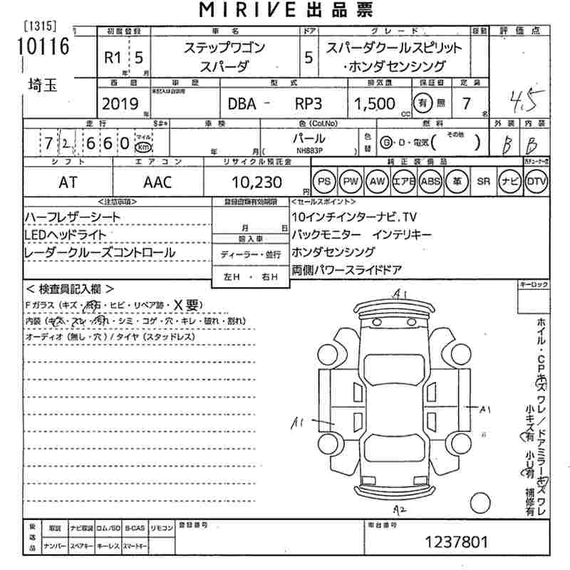 73 000 км КузовRP3 Комплектация SPADA COOL SPIRIT * HONDA SENSING