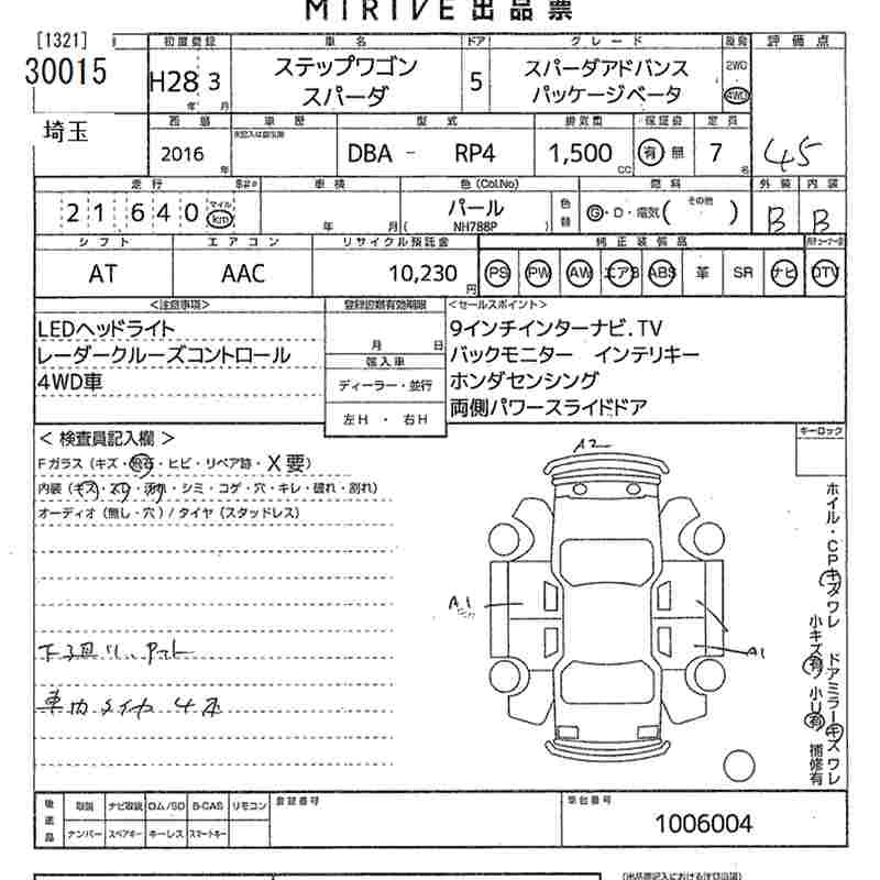 HONDA STEPWGN SPADA 2016 г., лот № 30015