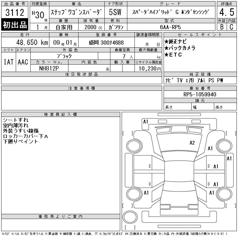 Год выпуска2018 Пробег 49 000 км КузовRP5 Комплектация SPADA HV G HONDA SENSING