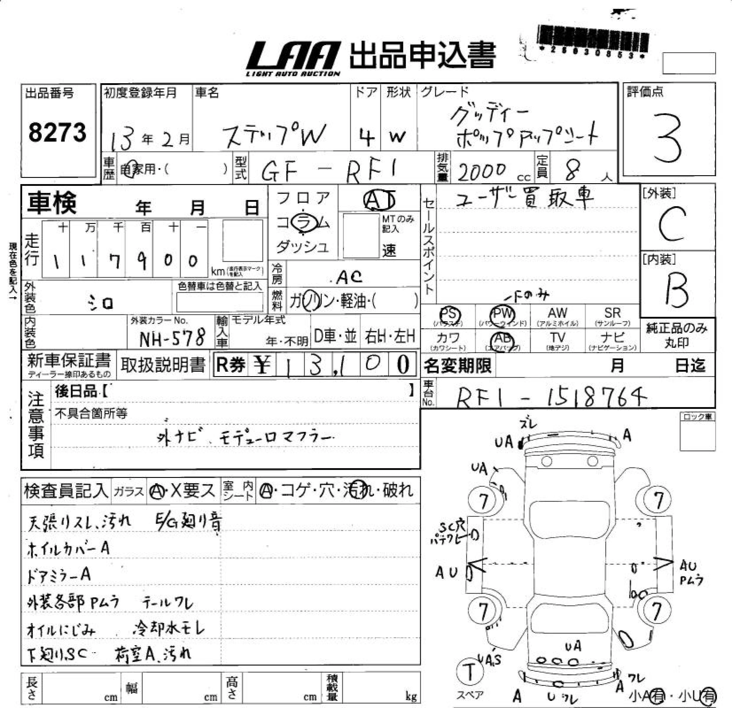 HONDA STEPWGN 2001 г., лот № 8273