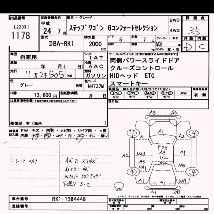 HONDA STEPWGN 2012 г., лот № 1178