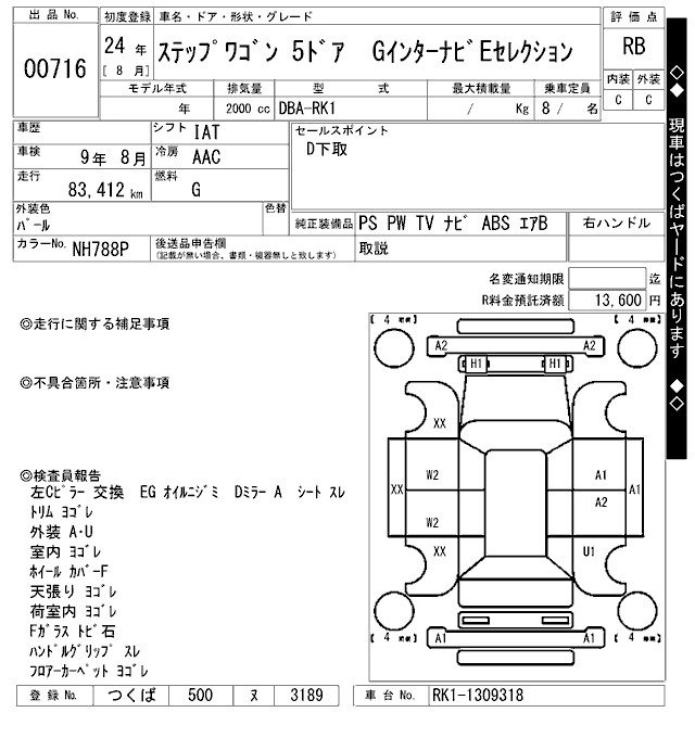 Год выпуска2012 Пробег 83 000 км КузовRK1 КомплектацияG INTER NAVIGATION E SELECTION