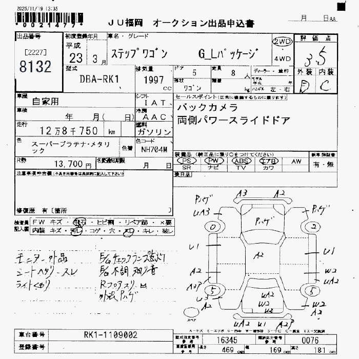 Год выпуска2011 Пробег 129 000 км КузовRK1 КомплектацияG L PACKAGE