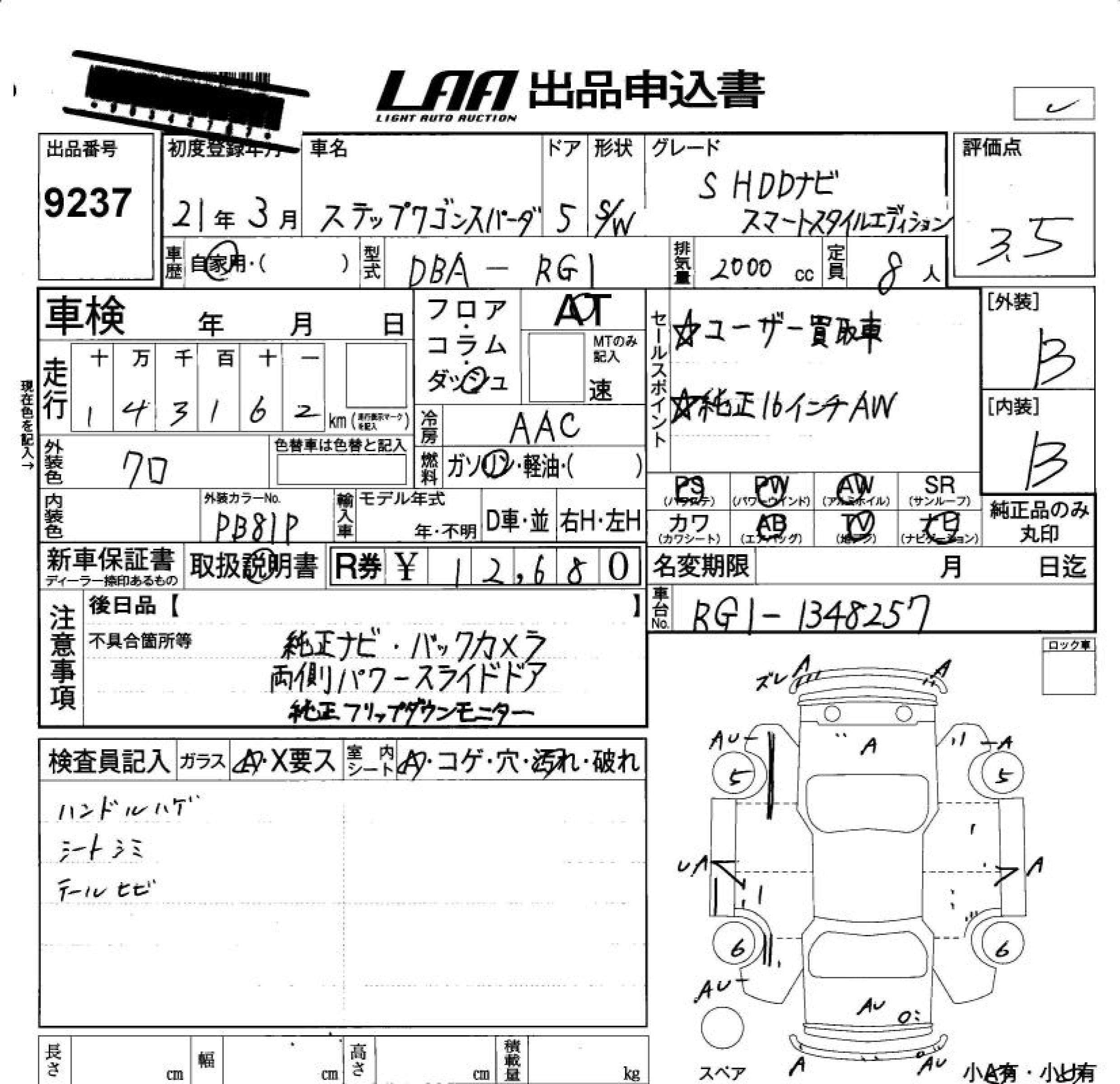Статус продан Лот 9237 Аукцион LAA Okayama Дата аукциона 23.01.2026
