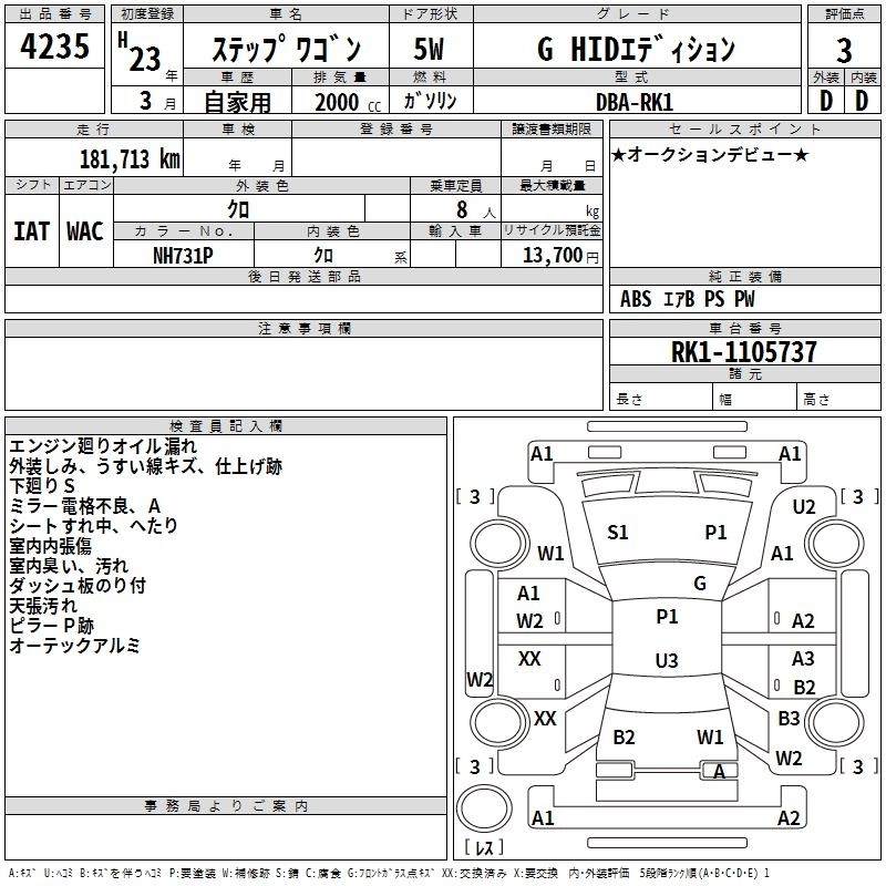 HONDA STEPWGN 2011 г., лот № 4235