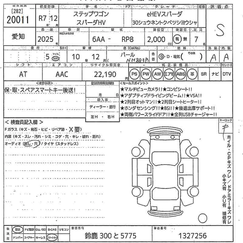 Статус выставлен на аукцион Лот 20011 Аукцион MIRIVE Aichi Дата аукциона 13.03.2026