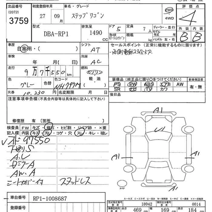 HONDA STEPWGN 2015 г., лот № 3759