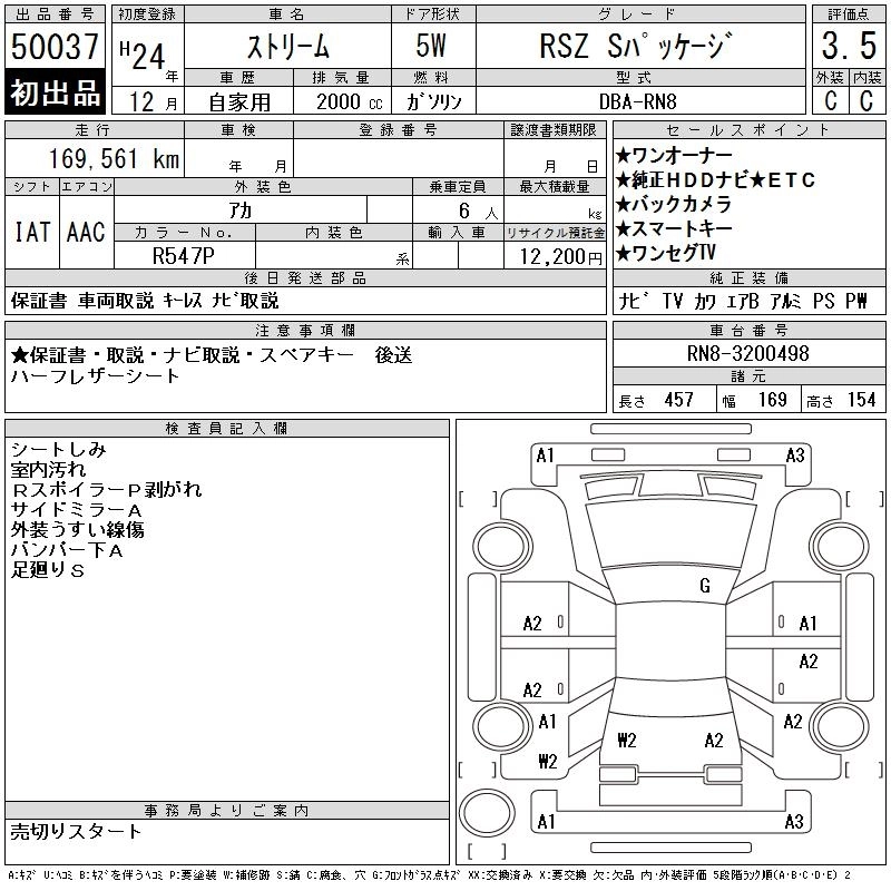 HONDA STREAM 2012 г., лот № 50037