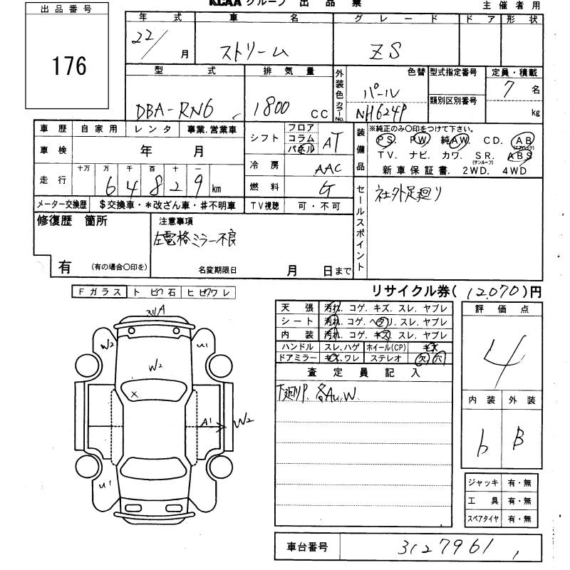 HONDA STREAM 2010 г., лот № 176