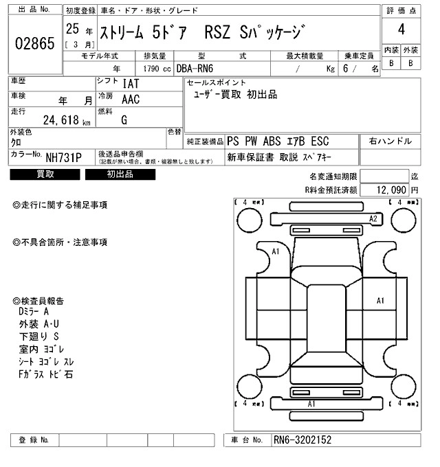 HONDA STREAM 2013 г., лот № 2865