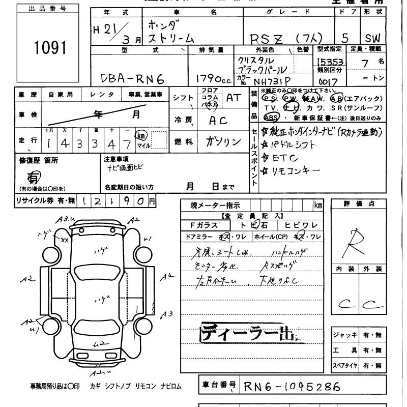 HONDA STREAM 2009 г., лот № 1091