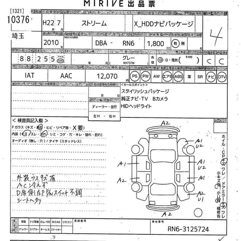 HONDA STREAM 2010 г., лот № 10376