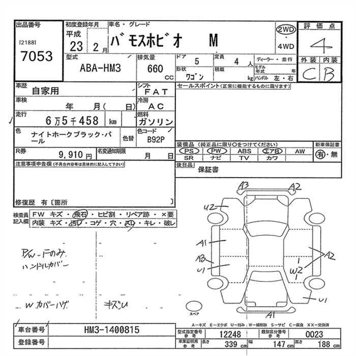 HONDA VAMOS HOBIO 2011 г., лот № 7053
